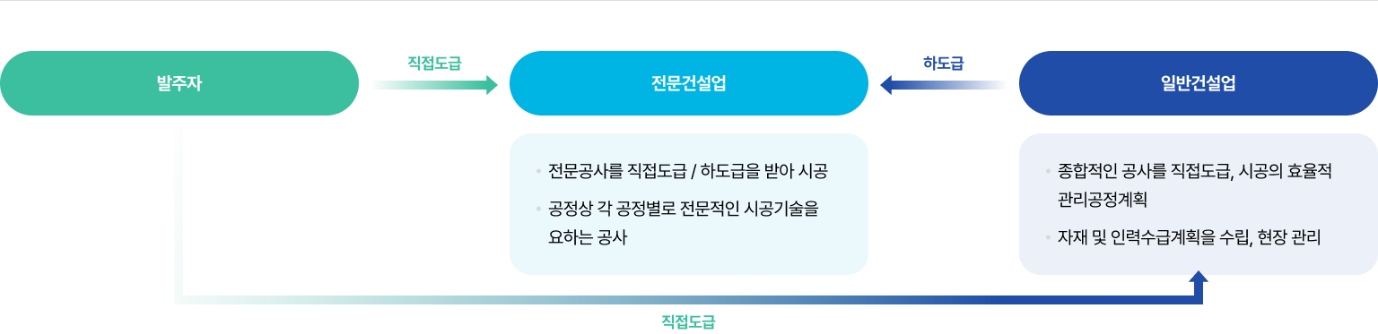 일반건설업에서 수립한 종합적인 관리계획을 토대로 시공을 담당하는 핵심적인 생산주체로서의 역할을 수행하고 있다.